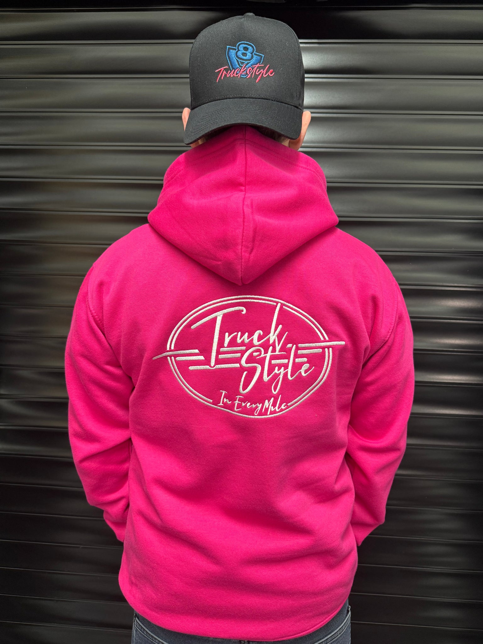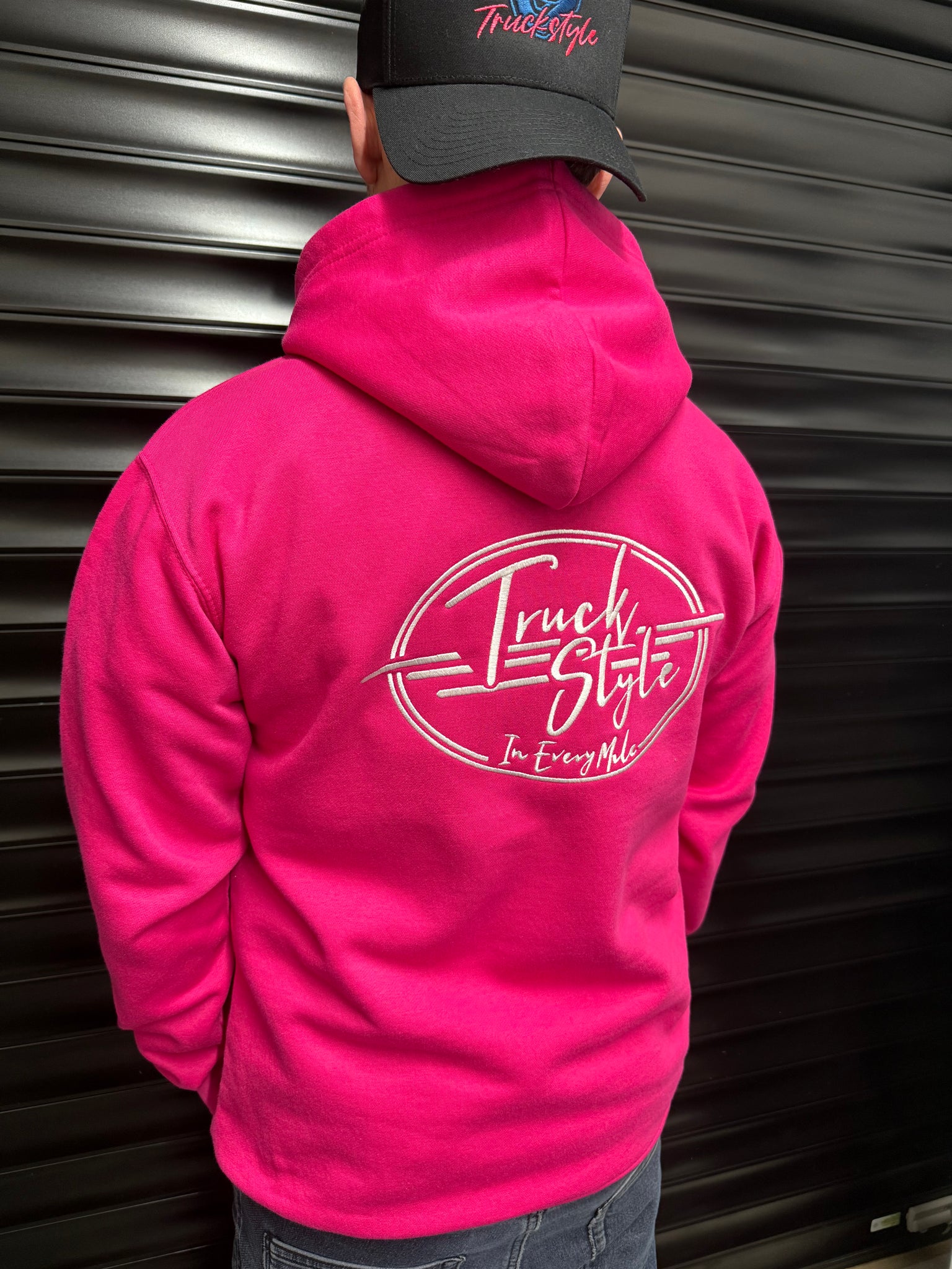 BRIGHT PINK HOODY WITH WHITE STITCH
