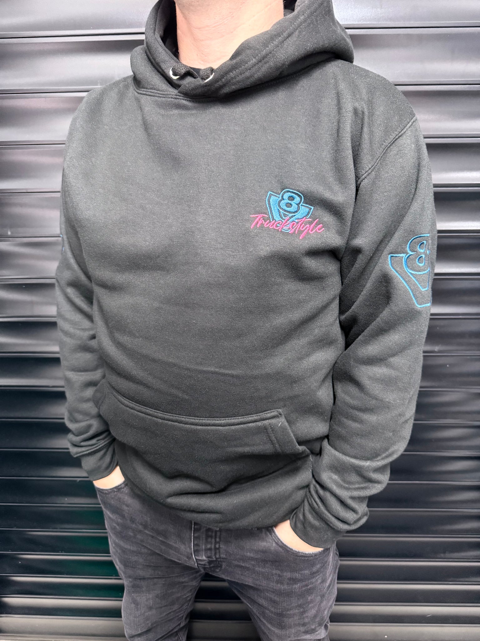 TruckStyle V8 Blue Stream Special Edition Embroidery Hoody With Sleeve V8